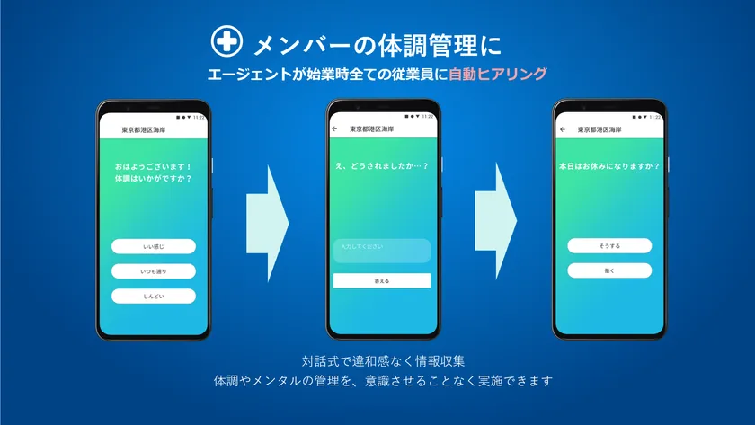 ・従業員の身体的/精神的健康状態の対話型ヒアリング・記録