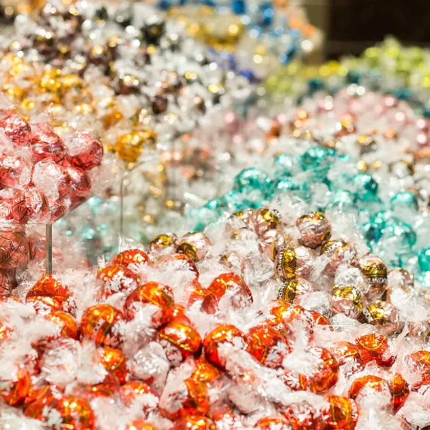 「リンドール」がカラフルに並ぶのが、売り場の中心となる「ピック&ミックス」です。お好きなフレーバーの「リンドール」を100g以上から量り売りでお求めいただける、リンツならではの販売システムです。毎日のおやつやご自分へのご褒美にも、カジュアルなプレゼントや、ご自身でチョコレートのプレゼントをカスタマイズされたいときにも、様々な用途に合わせて、自由な気持ちでチョコレート選びを楽しんでいただけます。