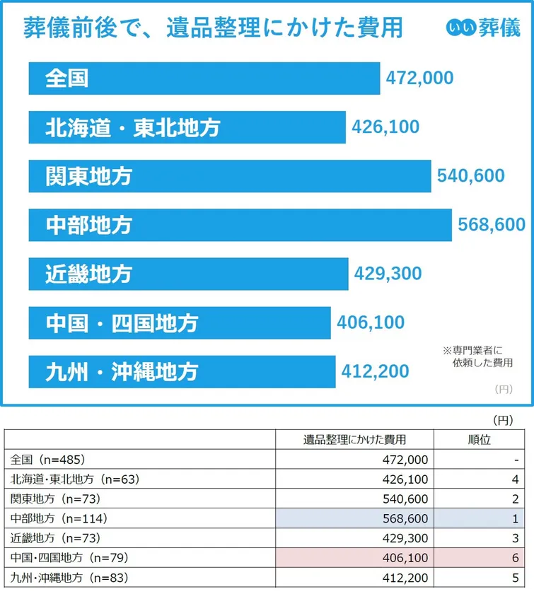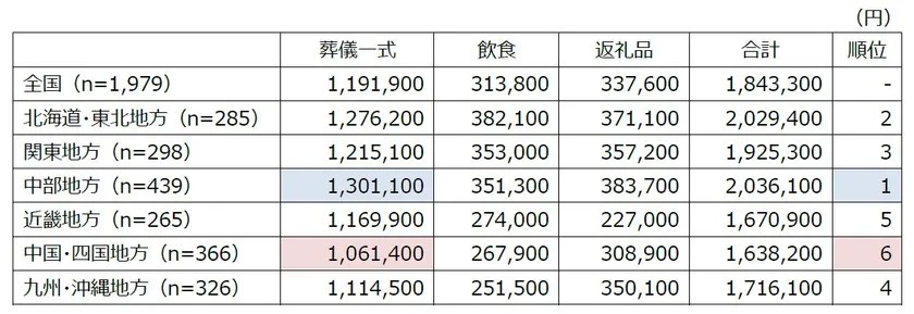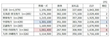 葬儀一式費用が高い都道府県・低い都道府県(地域別表組)