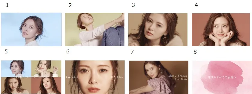 今夏の新色発売を記念し制作したイメージムービーでは白石さんの瞳にフォーカスを当てながら、見つめられた相手が思わずドキッとしてしまうような様々な表情を撮影。新色を加え計10種となるレンズに合わせ、それぞれ異なるヘアメイクの白石さんが登場します。透明感や可愛らしさ大人っぽさなど、女性も憧れるモテ要素が各所に詰まった動画となっています。