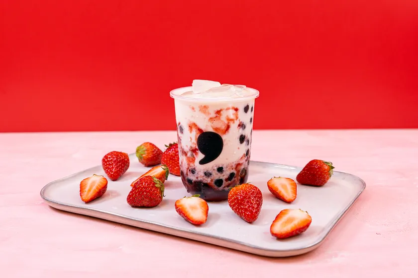 果肉たっぷりのストロベリーに新鮮なミルクをたくさんかけ合わせ、もちもちのタピオカを加えた一杯です。