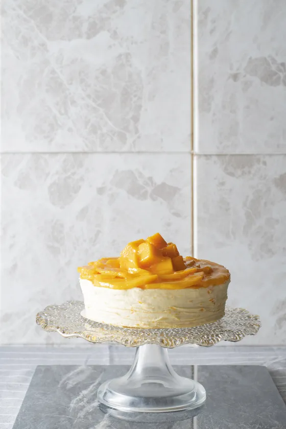 大きくカットした瑞々しい高級マンゴーを盛りつけた贅沢な仕上がり。スライスした2層のマンゴーが濃厚な味わいをより高め、果汁を混ぜた自家製シャンティ(生クリーム)がマンゴーの風味を際立たせています。