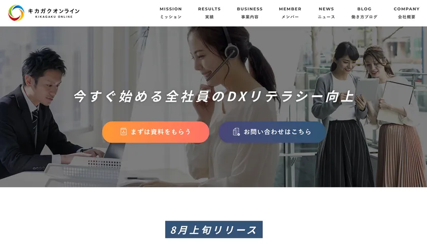 AI領域を含めた先端技術に関する教育事業を展開する株式会社キカガク(本社:東京都千代田区、代表取締役社長:吉崎 亮介)は、社員のDXリテラシーを底上げするオンライン動画学習サービス「キカガクオンライン」( https://online.kikagaku.co.jp/ )のサービスページをリリースしました。