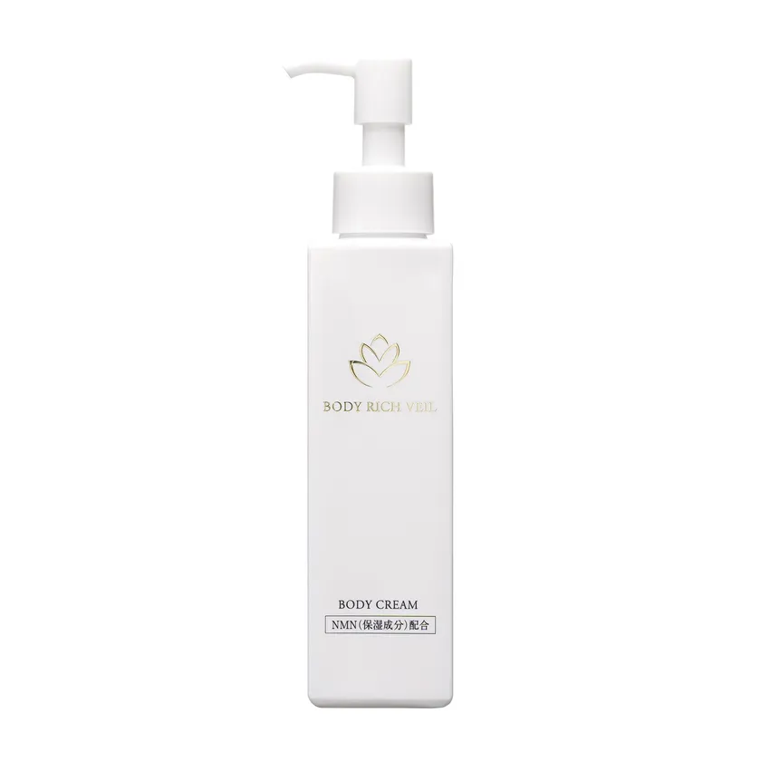 ・NMN ボディベールは、セラミド・ヒアルロン酸・コラーゲンなど潤いに必要な成分を惜しみなく配合したことで、軽やかで伸びの良いクリームが角質層のすみずみまで浸透し、みずみずしく柔らかでフレッシュな肌へと導きます。