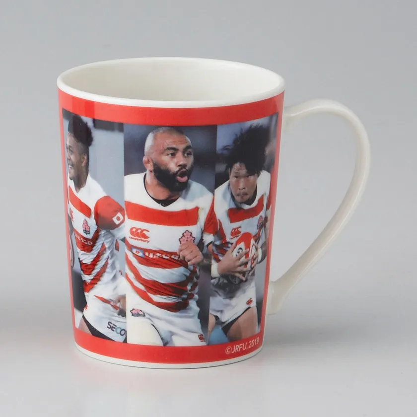 ラグビー日本代表のジャージーカラーである赤をベースに、桜の戦士たちをあしらったマグ。