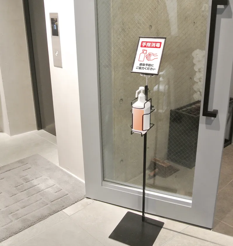 ・ボトルストッパー付きで見た目もスマートに消毒液の盗難を防止できる。