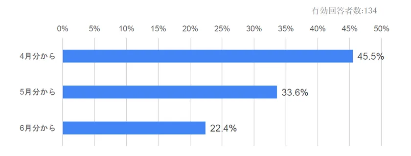 (3)家賃の滞納や、減免・遅延の相談、もしくは退去の通告などが発生したのは4月分の家賃からが45.5%、5月分からが33.6%