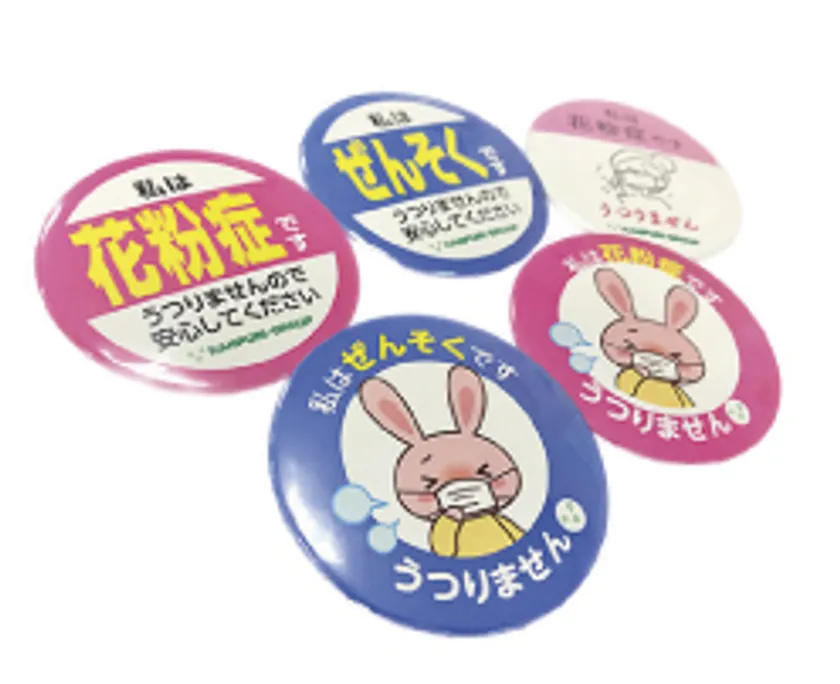 そこで、ぜんそくや花粉症の方々にお使いいただける「ぜんそく・花粉症缶バッジ」をご来店いただいたご本人様にお1つ差しあげております。