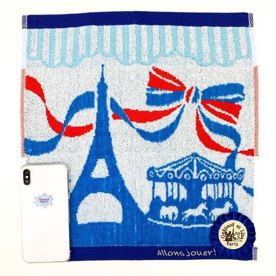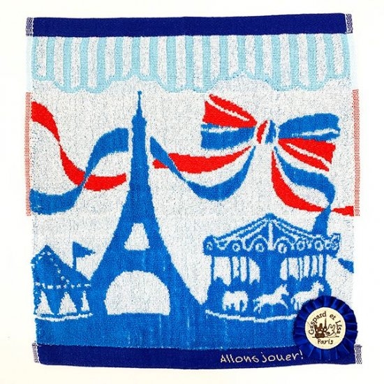 リサとガスパールといえば、やはりフランスという事でエッフェル塔やメリーゴーランドがシルエットになったデザインのこちらのタオル。
