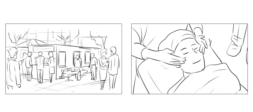 実際の顧客体験をデータとして、顧客の変化に合わせて新たに実行すべきマーケティング施策を立案、動画プロットやWebコンテンツ、商品コンセプト、絵コンテといったアウトプットに落とし込みます(添付資料参照)。開発した施策が狙える市場規模や競合ブランドに対する優位性、購買喚起力などの定量的な検証も行います。