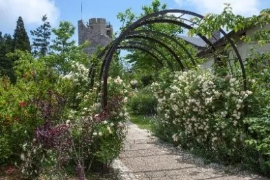 イングリッシュガーデンとバラのアーチが楽しめます。