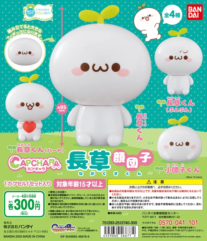 長草くん、長草くん(ぷんぷん)、長草くん(ハート)、小団子くんの全4種をコレクションしてお楽しみいただけます。6月第2週よりカプセル自販機専用商品(ガシャポン)として、全国の玩具売場、量販店、家電店などに設置されたカプセル自販機にて順次販売開始予定です。詳しくはガシャポンワールドのウェブサイト( https://gashapon.jp/products/detail.html?jan_code=4549660466772000 )をご参照ください。