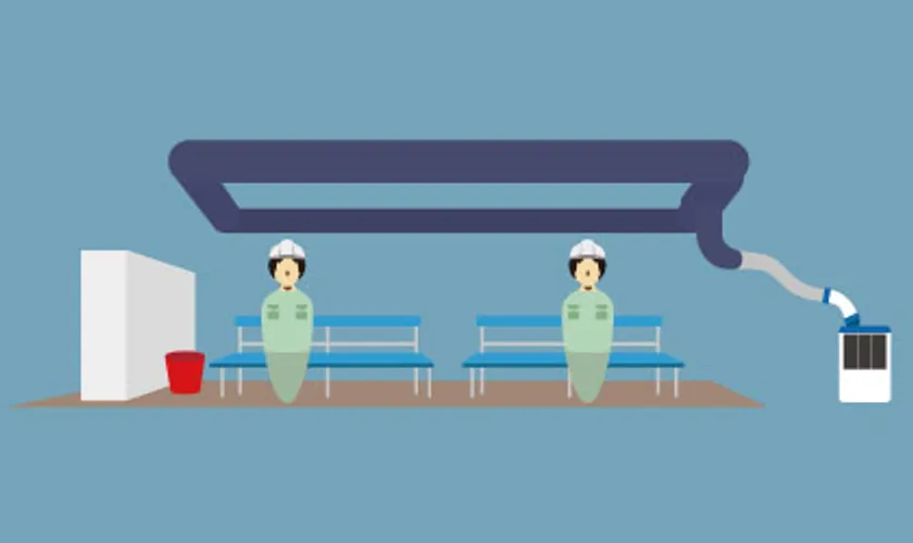 エアホースワンと空調機を組み合わせることで、冷却されたフレッシュエアをどんな場所にも届けることができます。