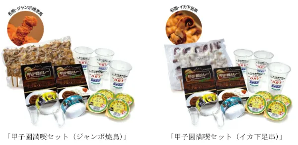 第1弾は6月1日(月)から6月30日(火)までの期間限定で阪神甲子園球場オフィシャルオンラインショップにおいて「甲子園満喫セット」(2種類)を販売いたします。プロ野球公式戦が無観客での開幕となり、しばらく阪神甲子園球場に足を運んでいただくことができないことから、ご自宅でも阪神甲子園球場を体感できるよう甲子園名物をセットにいたしました。内容は甲子園名物「甲子園カレー」2箱(4食)、「ジャンボ焼鳥(またはイカ下足串)」10本のほか「甲子園歴史館レアチーズケーキ」4個も加えた大変お得なセットとなります。更に、本商品はクール便及び宅配便でのお受取りになりますが、いずれも送料が無料となります。また、先着800セットまで、1セットにつき「阪神甲子園球場オリジナルビールカップ」4つ、プラカップに装着すると持ち手になる「ビアジョッキホルダー」2つをプレゼントいたします。なお、800セットを超えた場合でも、1セットにつき「阪神甲子園球場オリジナルビールカップ」4つをプレゼントいたします。
