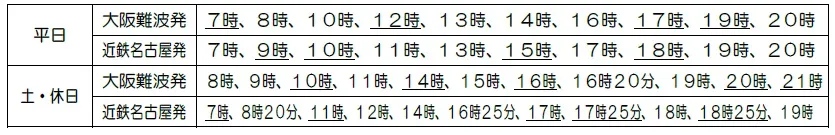 なお、現在土・休日に運休している大阪難波~近鉄名古屋間の特急列車6本(3往復)は同日からすべて運転を再開します。