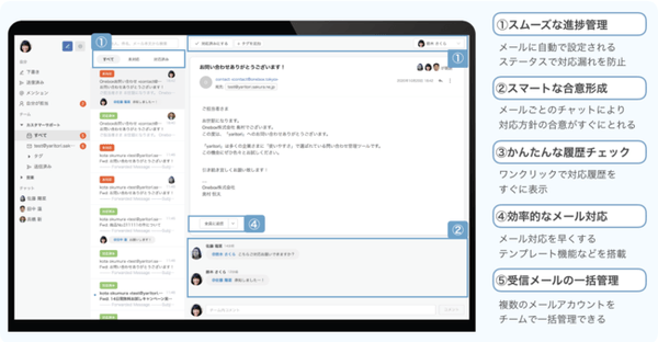 複数人でのお問い合わせ対応業務を効率化し、対応漏れや二重対応をなくすクラウド型のメールサービスです。