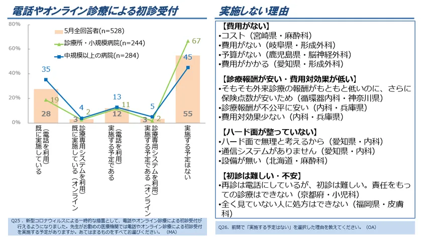 図10. 電話やオンライン診療による初診受付実施状況、実施しない理由