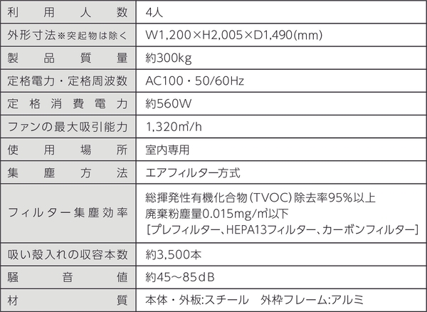 高性能な脱煙機能はそのままに、従来機より導入コストを約1/2に抑えた価格を実現しました。これにより、初期費用を抑えながら、質の高い分煙環境の実現が可能です。