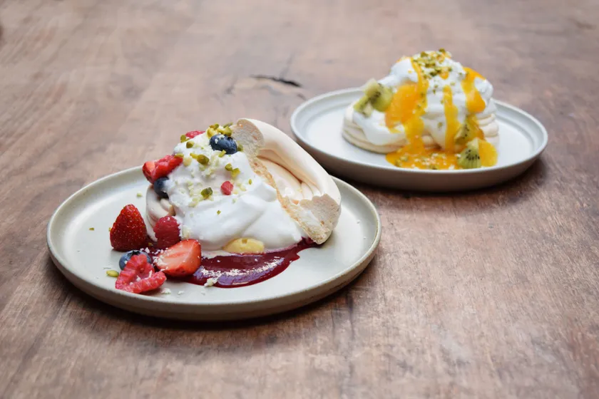ニュージーランド発祥の「パブロバ」。メレンゲをオーブンで焼き上げ、カスタードや生クリーム、フルーツを乗せたデザートです。サクッとして口の中でシュワっと溶ける新食感をお楽しみください。イチゴ、ラズベリー、ブルーベリーなど甘味のあるフルーツをトッピングした「ミックスベリー」とキウイ、オレンジなど程よい酸味とクリームの甘さでバランスの取れた「シトラス」の2種をご用意しています。