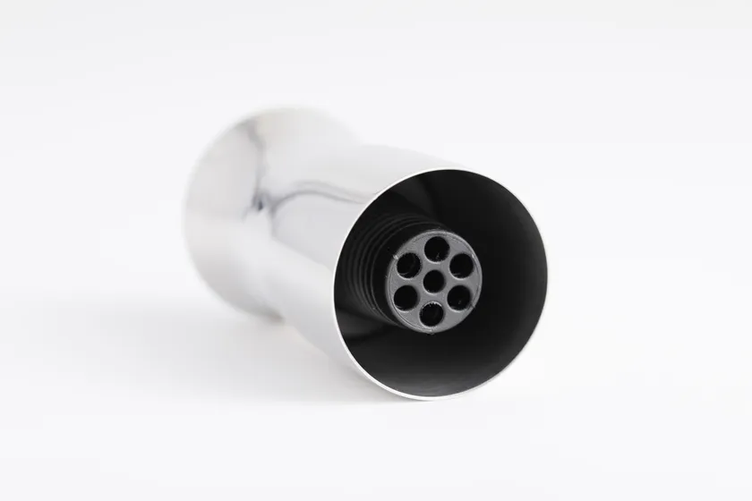 ワインがバンビーズ内を通るだけでは、十分に空気と混ざり合えません。そこで、バンビーズ内に「空気混合層」を設けました。7つのパイプを通ってきた適量のワインと、フィルターから入ってきた適量の空気は、この層で混ざり合い、熟成の進んだワインがフィルターを通ってワイングラスに注がれます。