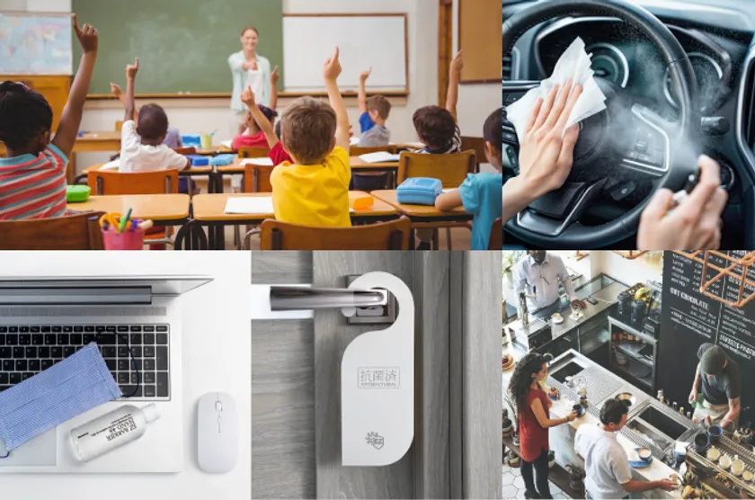 二酸化チタン光触媒やアミノ酸を主成分とした無光触媒を使用した、365日効果が持続する部分的なコーティングです。不特定多数の人が使用する、家具や備品に到るまで、あらゆるアイテムを部分的に抗菌コーティングします。※1