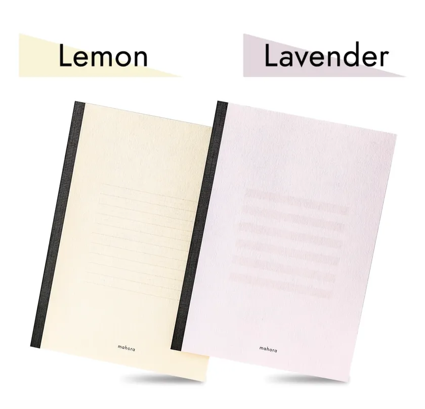 商品名:「mahoraノート・ラベンダー」「mahoraノート・レモン」の2種類