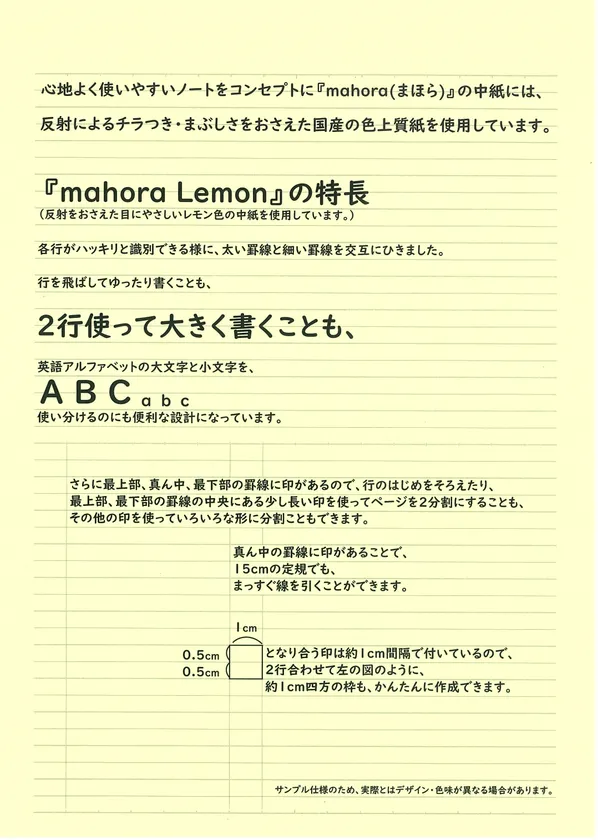 行数 :「mahoraノート・ラベンダー」25行、「mahoraノート・レモン」44行