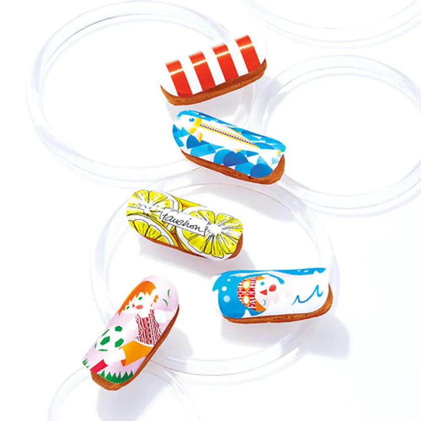 カラフルなチョコレートトッピングで大人気のミニエクレア5種のセット。今シーズンは「スポーツ」をモチーフにした
