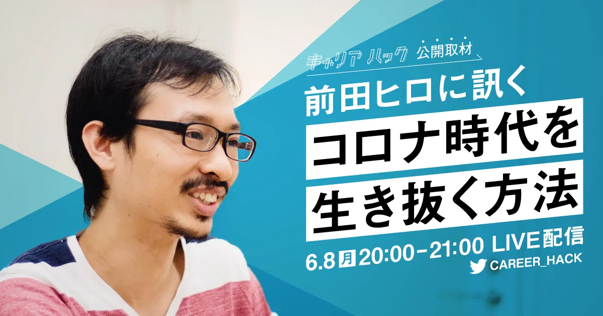 『キャリアハック』公開取材 第3弾、 6月8日(月)20時にLIVE配信決定! ベンチャーキャピタリスト 前田ヒロ氏に訊く、 「コロナ時代を生き抜く方法」。