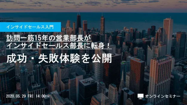 人材採用・入社後活躍のエン・ジャパン株式会社(本社:東京都新宿区、代表取締役社長:鈴木孝二)は新型コロナウイルス感染拡大に伴い、2020年4月より「新型コロナウイルス対策支援プロジェクト」を開始。その一環として、 2020年5月29日(金)にオンラインセミナー「訪問一筋15年の営業部長がインサイドセールス部長に転身!成功・失敗体験を公開」を開催しましたので、ご報告いたします。