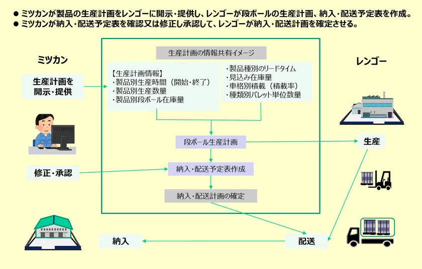 株式会社Mizkan(本社:愛知県半田市、代表取締役社長兼CEO兼COO:吉永 智征、以下ミツカン)とレンゴー株式会社(本社:大阪市北区、代表取締役会長兼CEO:大坪 清、以下 レンゴー)は、共同でホワイト物流※1の実現に向けた取組みを開始し、ミツカン栃木工場にて使用する段ボールの物流効率化実証実験で、1日あたりの納入回数を約2割削減できることを実証いたしました。