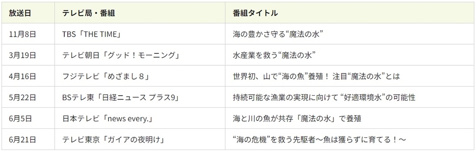 好適環境水を使った岡山理科大学の陸上養殖研究に対する全国ネットのテレビ局の取材・放送が相次いでいます。2023年11月8日にTBSの情報・報道番組「THE TIME」で放送されたのに続いて、今年に入ってから6月21日のテレビ東京「ガイアの夜明け」まで立て続けに6件の番組の取材が続きました。