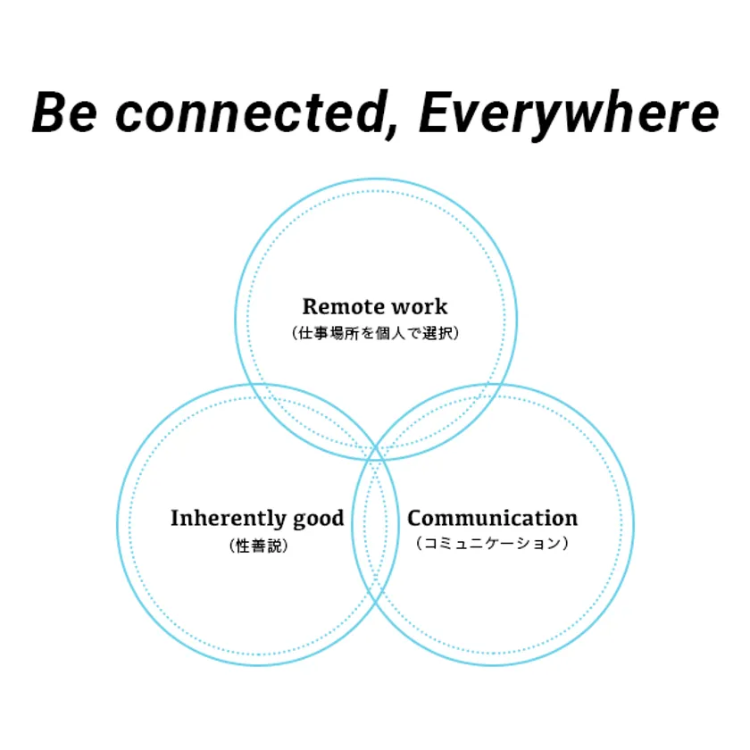 また、リモートワークでは社員のさぼりなどの管理についても問題になりますが、人間の本性は基本的に善であるとする倫理学・道徳学説である性善説をもとにしております。