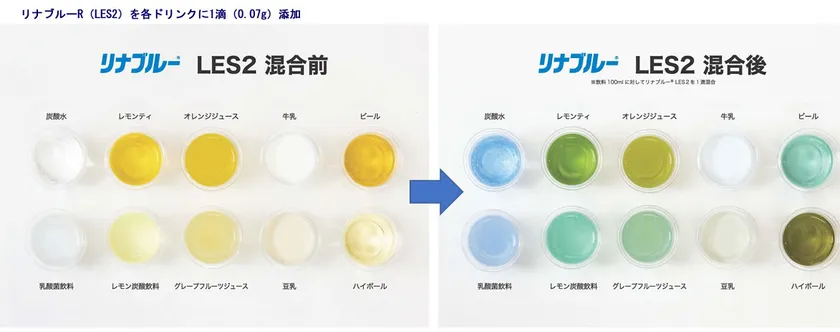 リナブルー(R)の魅力はその鮮やかさ、かつ無味無臭、そしてノンアルコール。