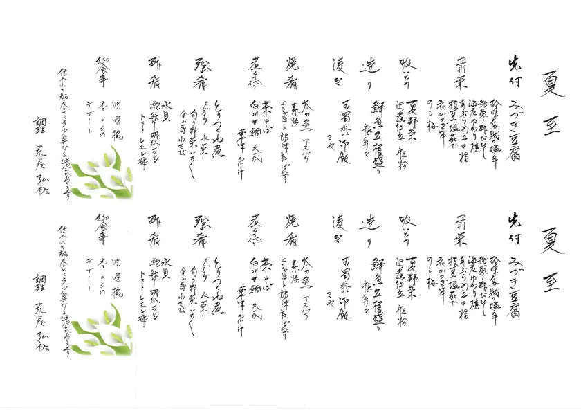 (画像のお品書きは2020年6月の献立例となります。)