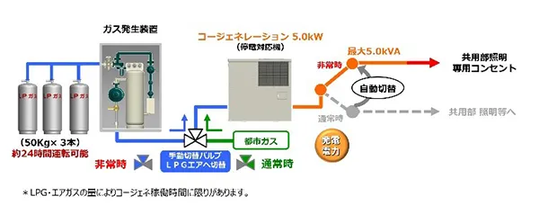 上図:防災対応型マンションコージェネシステム概念図