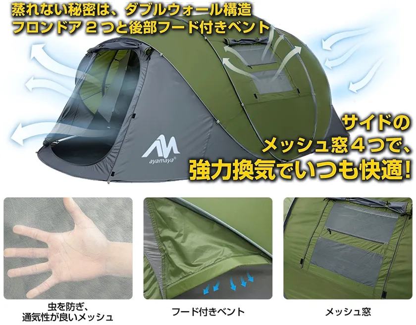 【ayamayaポップアップテントの特徴】