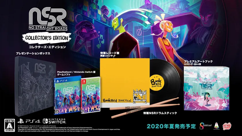 PS4(R)版・Nintendo Switch(TM)版《No Straight Roads(ノー・ストレート・ロード)》通常版、コレクターズ・エディションは現在好評予約受付中。さらに、予約期間中ご予約した方に先着予約特典として『オリジナルピックセット』をご用意しております。予約は各ゲームショップ、またはGSEの公式サイトで承ります。是非確認してみてください。PS4(R)版・Nintendo Switch(TM)版《No Straight Roads(ノー・ストレート・ロード)》通常版、コレクターズ・エディションは現在好評予約受付中。予約は各ゲームショップ、またはGSEの公式サイトで承ります。是非確認してみてください。