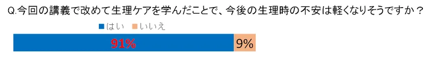 ◆生理ケアを学んだことで、今後、「生理時の不安は軽くなる」と91%が回答※FC今治のレディースチームの選手のみ回答