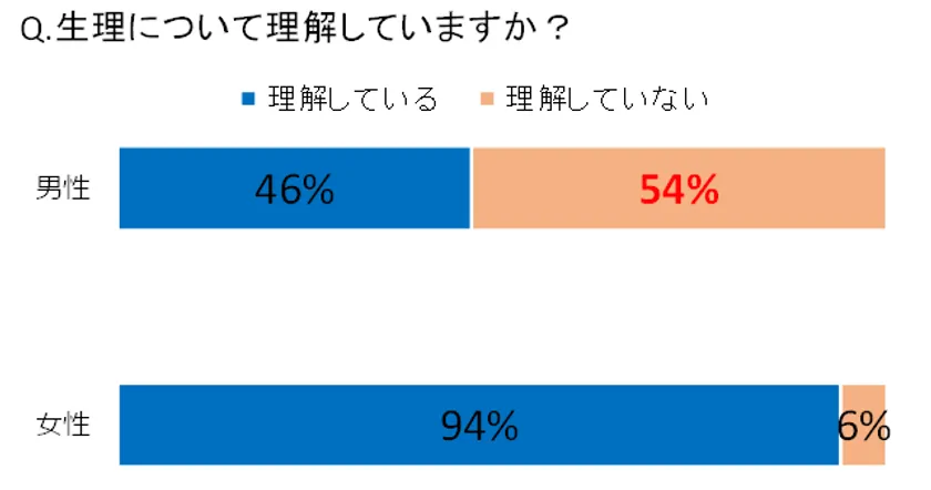 ◆男性の54%が、「女性の生理について理解していない」と回答。