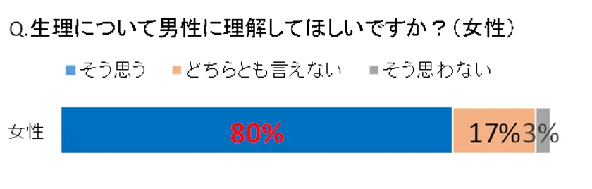 ◆女性の80%が、「男性に生理について理解してほしい」と回答。