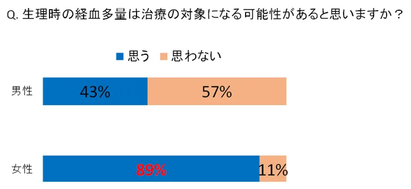 ◆女性の89%が、「生理時の経血多量は治療の対象になる可能性がある」と回答。