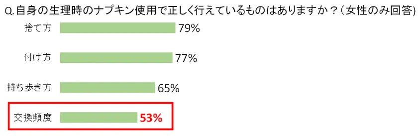 ◆女性の53%のみ、「ナプキンの正しい交換頻度に自信がある」と回答。※女性のみ回答