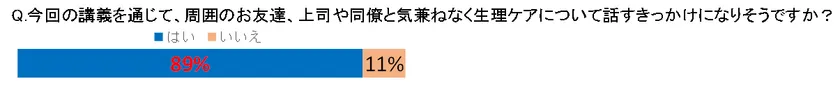 ◆受講後、「生理ケアについて気兼ねなく話せる」と89%が回答。