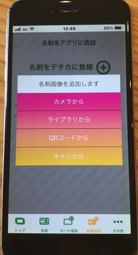「デタカ」の名刺登録画面