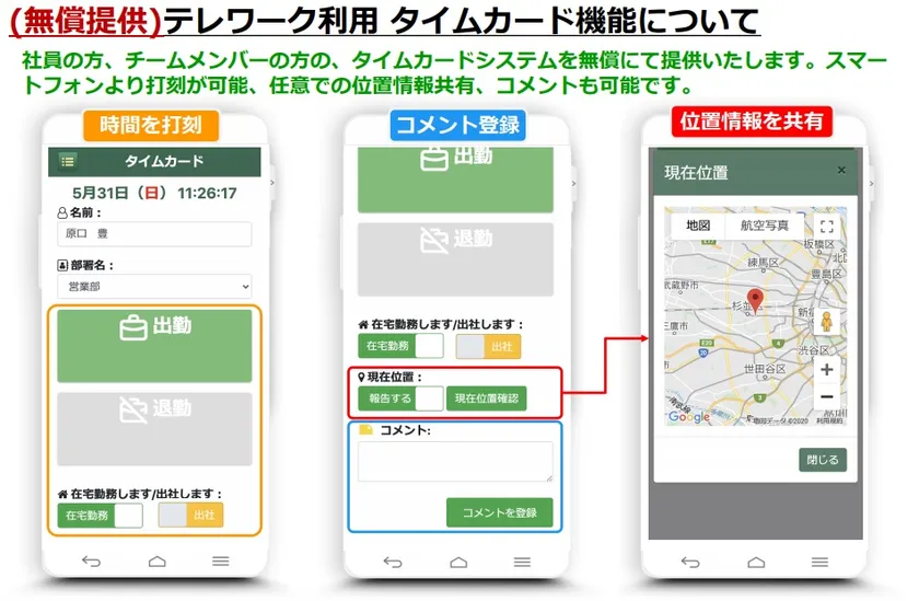 サテライトオフィス、アフター/ウィズ コロナ対策支援で、 タイムカード/社内報告機能など、 テレワーク用アプリケーション5種を無償提供