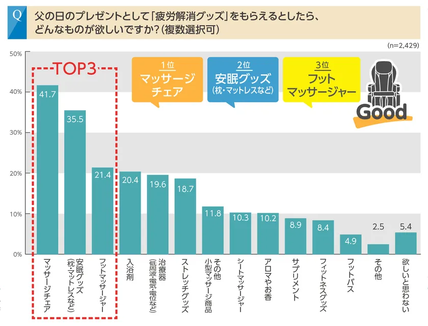 (7) 父の日のプレゼントとして欲しい疲労解消グッズ、1番人気は10年連続「マッサージチェア」