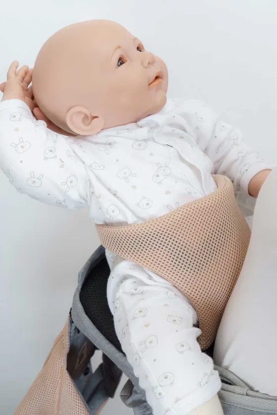 赤ちゃんの骨盤姿勢を正しいM字に保つ座面構造。腰でしっかり重さを支え、赤ちゃんが肩から吊られることなく肩の負担を大幅に削減。長時間座った姿勢でも痛くならない衝撃吸収高性能ウレタンを使用。