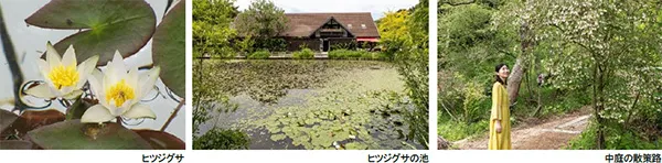 池の中では日本の自生種ヒツジグサやアサザ、ジュンサイが広がる大きな池があります。その周辺では六甲山の自生種の花々を鑑賞しながら散策できます。