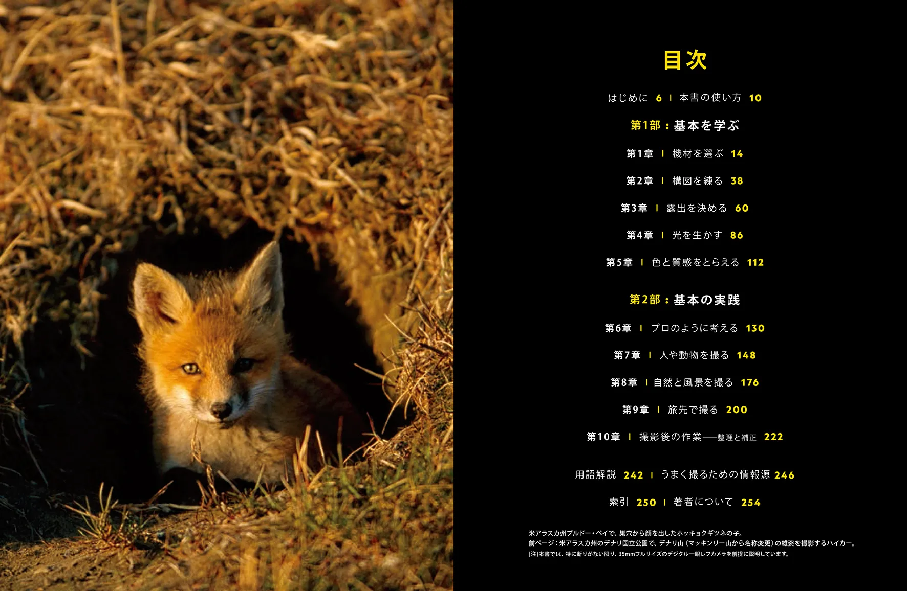 今回は、ナショナル ジオグラフィックで活躍する現役の一流写真家、『PHOTO ARK 動物の箱舟』のジョエル・サートレイが、自らの経験から得た撮影ノウハウを惜しみなく伝授。最短の上達法を解説します。これから写真を撮りたいという人にも分かるよう、彼の撮影経験や作例を挙げて、撮影に必要な技術を詳しく紹介。また、単なる技術だけでなく、被写体との接し方、撮影前の準備や撮影時の心構え、撮影後の写真の整理法など、自身が持つ情報を余すところなく伝えています。プロからのアドバイスがたっぷりつまった本書を読めば、撮影へのモチベーションもアップ。今すぐにでもカメラを持って出かけたくなる。他に類を見ない撮影法を紹介した究極の一冊です。